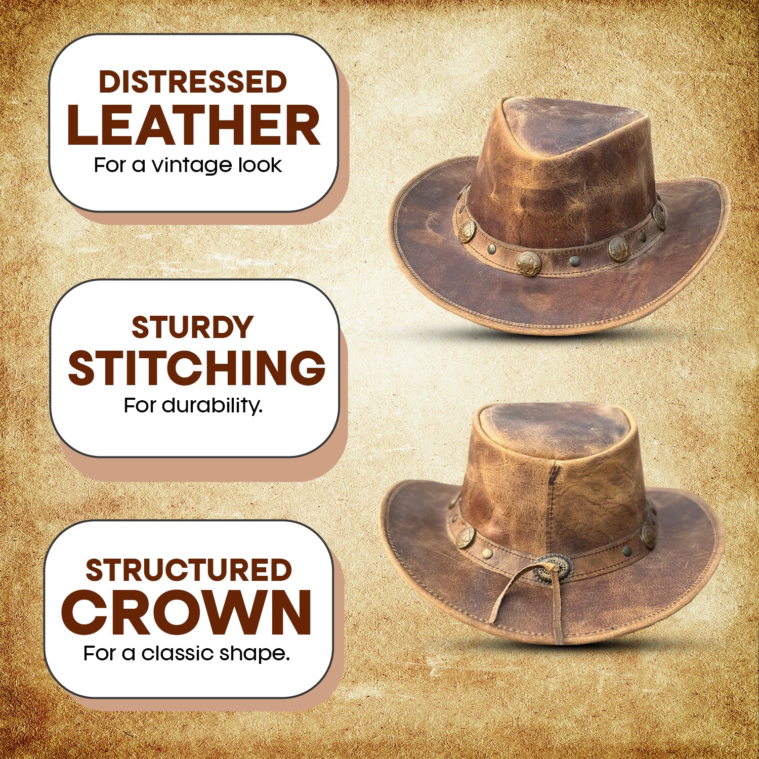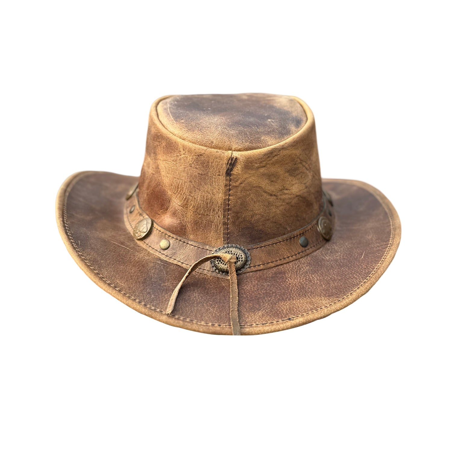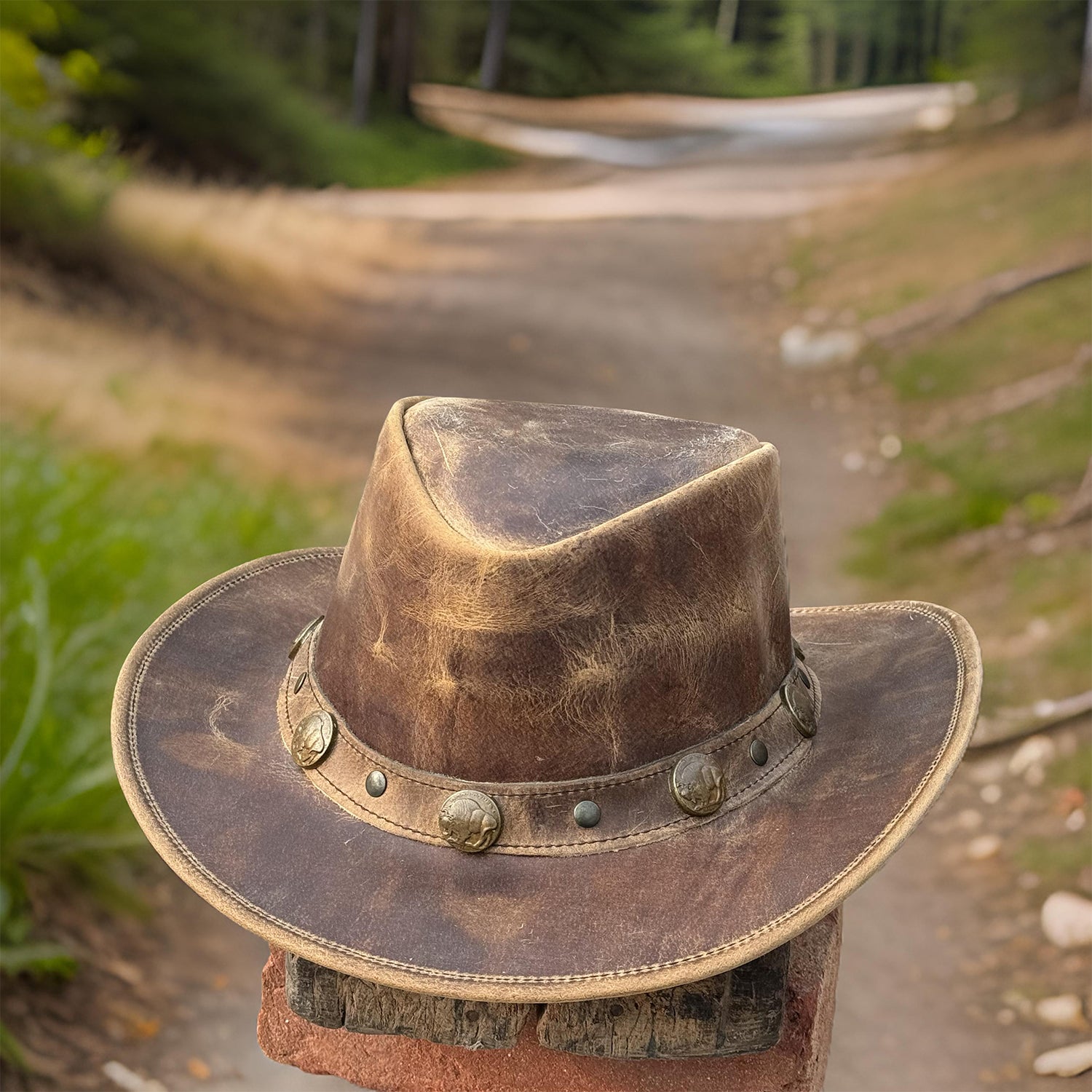 Add a rugged Western touch to your collection with this vintage brown cowgirl hat. Crafted from high-quality leather with a worn-in, vintage look, this cowboy hat for women becomes even more unique with time. Perfect for outdoor adventures, festivals, or simply adding some Western flair to your daily outfits.