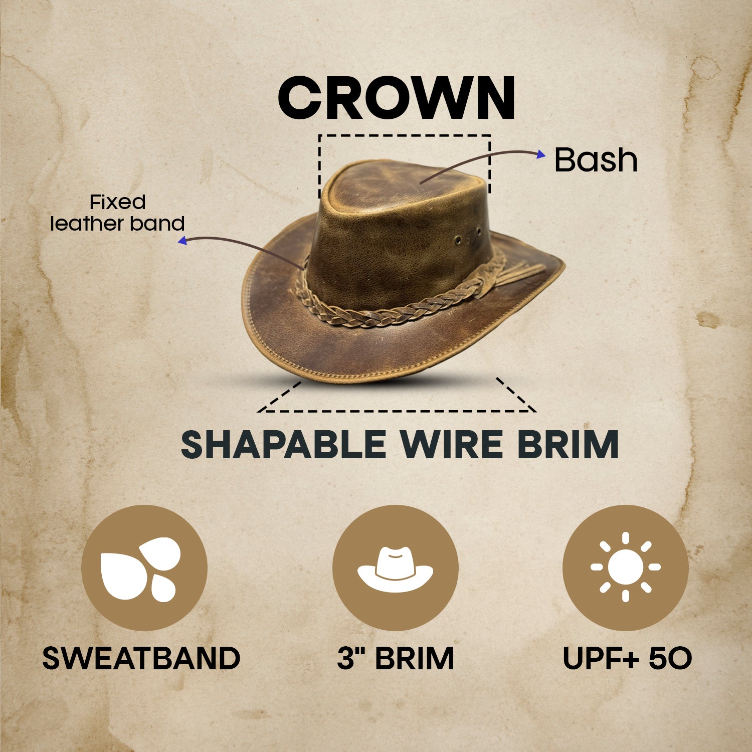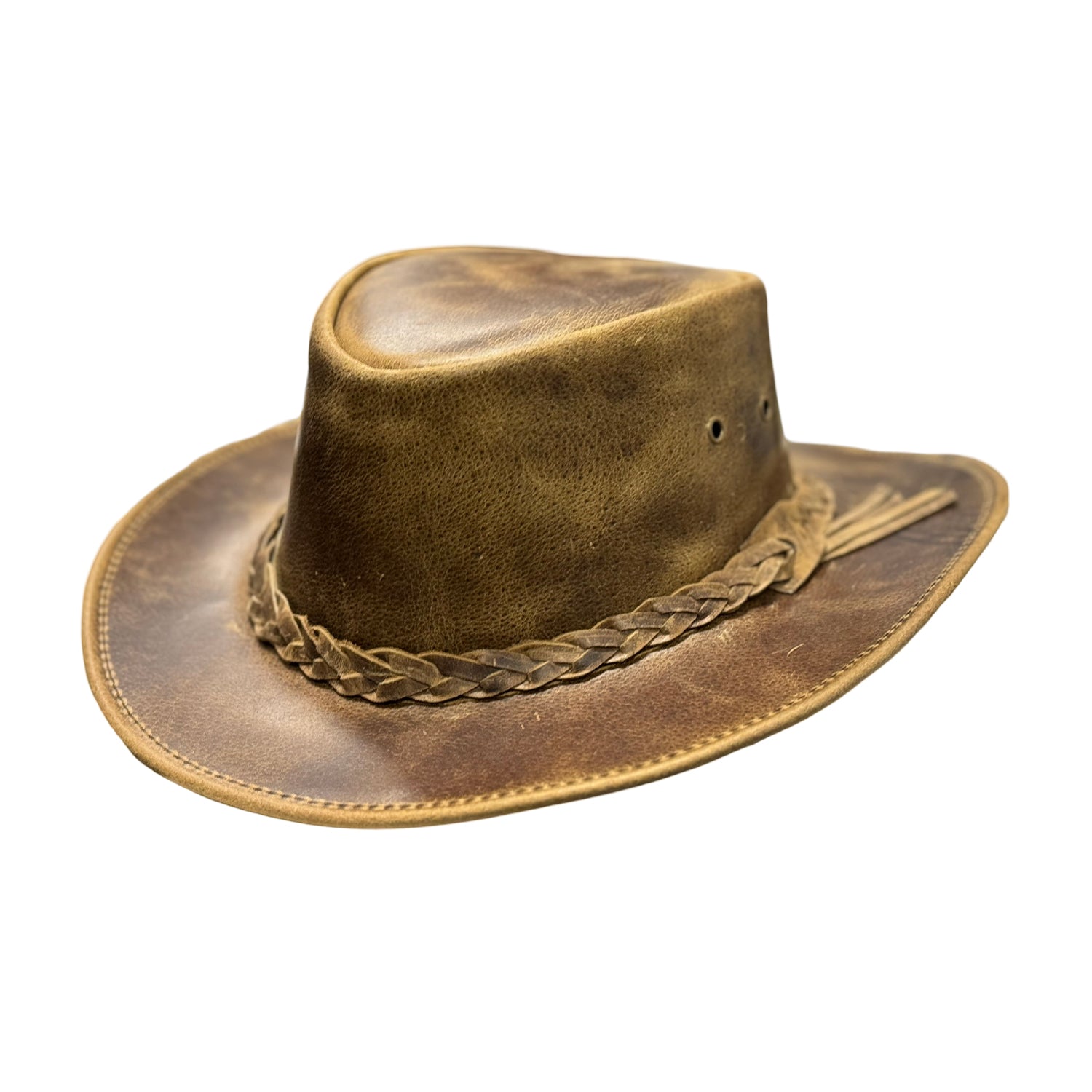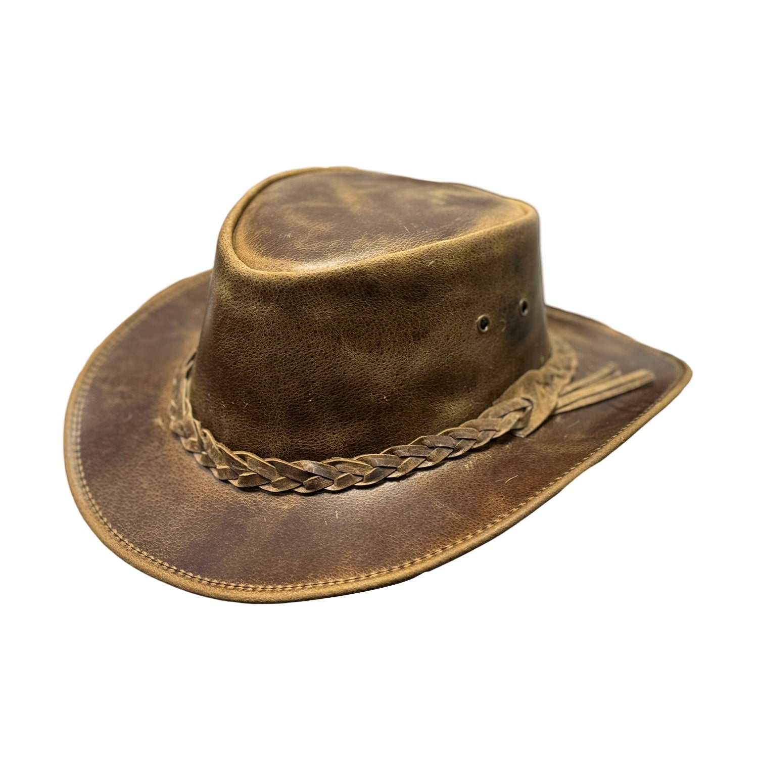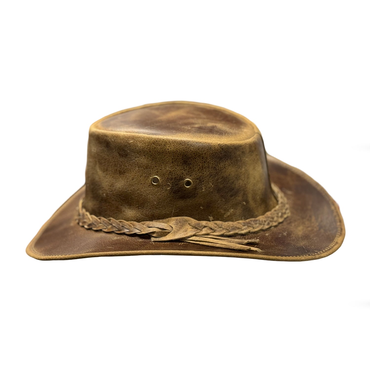 Experience the ideal mix of rugged charm and practicality with our rodeo men's cowboy hat. Crafted from genuine distressed cowhide leather, this sombrero vaquero para hombre offers a vintage, weathered look that’s perfect for outdoor adventures or adding a bold Western touch to your everyday outfits.