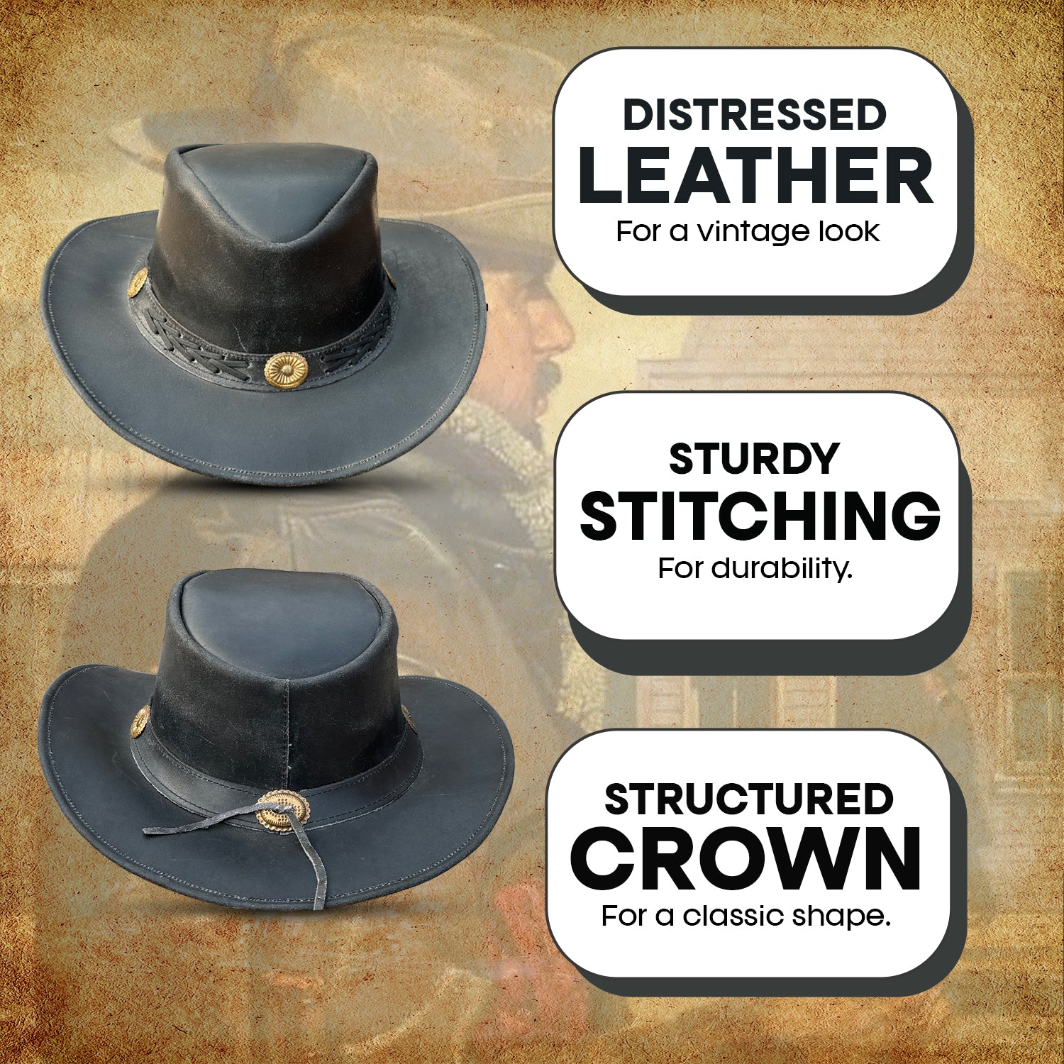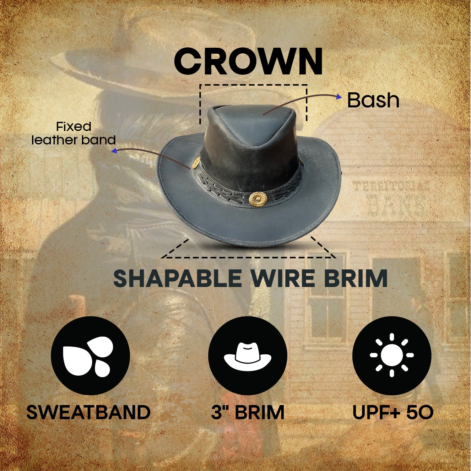 Designed for all-day comfort, this men’s cowboy hat features a soft inner sweatband, keeping you cool and dry during long outdoor hours. Whether you’re riding, working, or enjoying the outdoors, the removable chinstrap ensures your cowboy hat stays securely in place, even on windy days. The water and stain-resistant leather adds durability and practicality, making it an ideal companion for all your adventures.