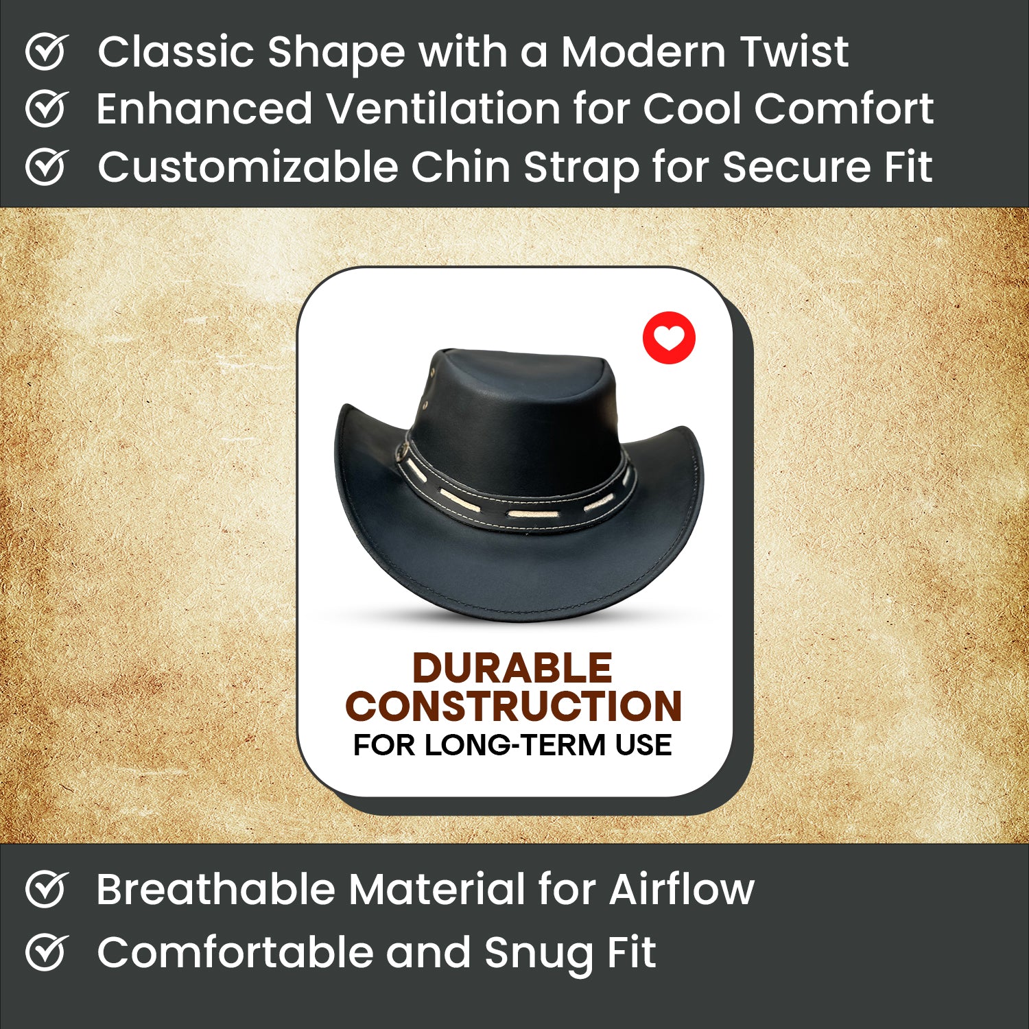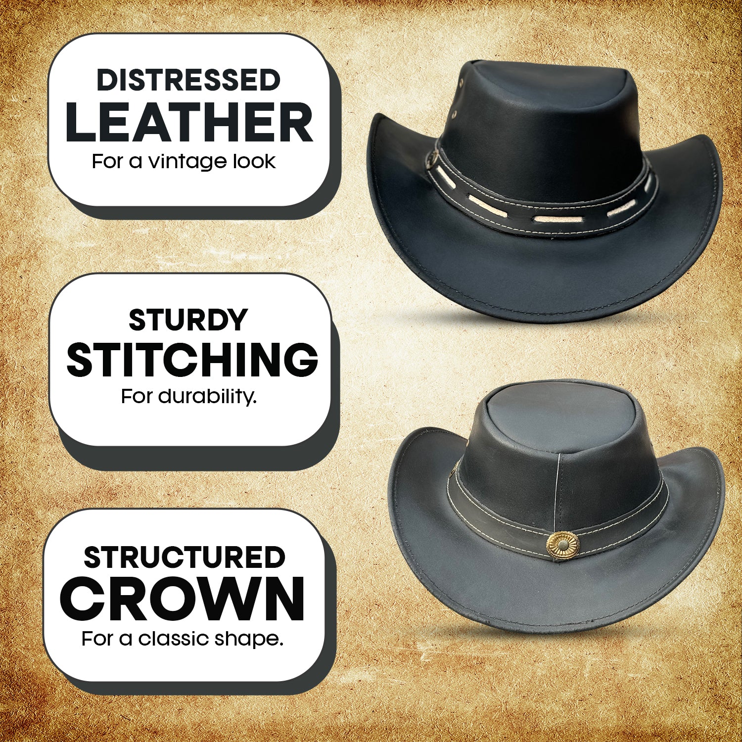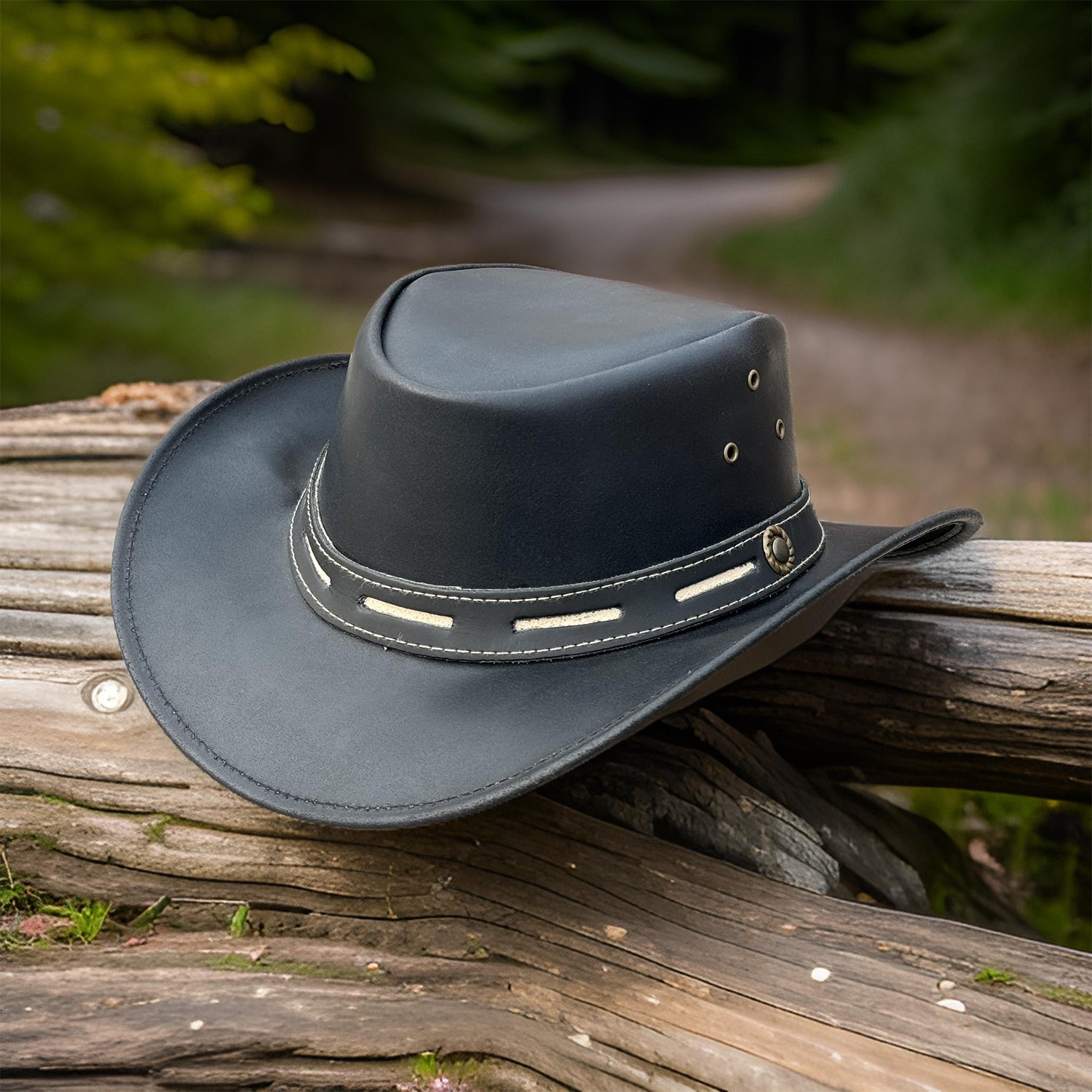 Designed to resist water and stains, this men's cowboy hat is ready to take on the elements. The leather band with contrast stitching and decorative Concho detail adds a stylish Western touch that enhances the hat’s overall appeal.