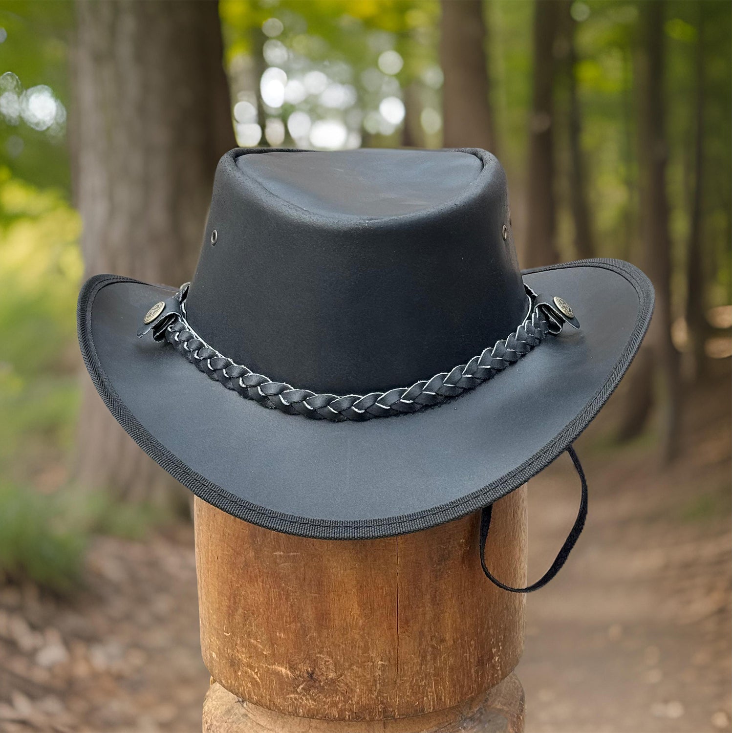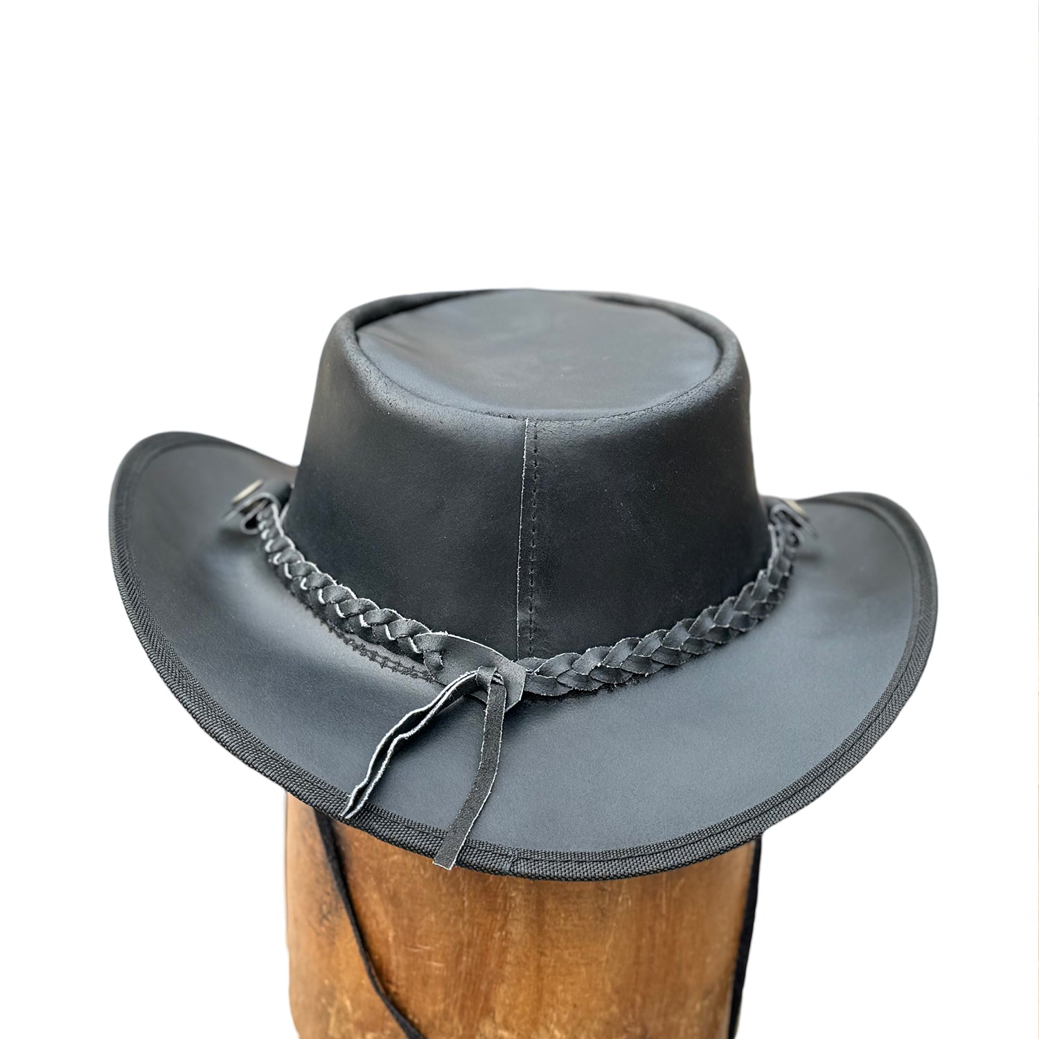 This black leather cowboy hat is the perfect mix of durability, comfort, and classic Western style. Crafted from premium leather, this men’s cowboy hat boasts a rugged design with a shapeable brim, allowing you to personalize your look—whether you prefer a traditional curve or a modern twist.
