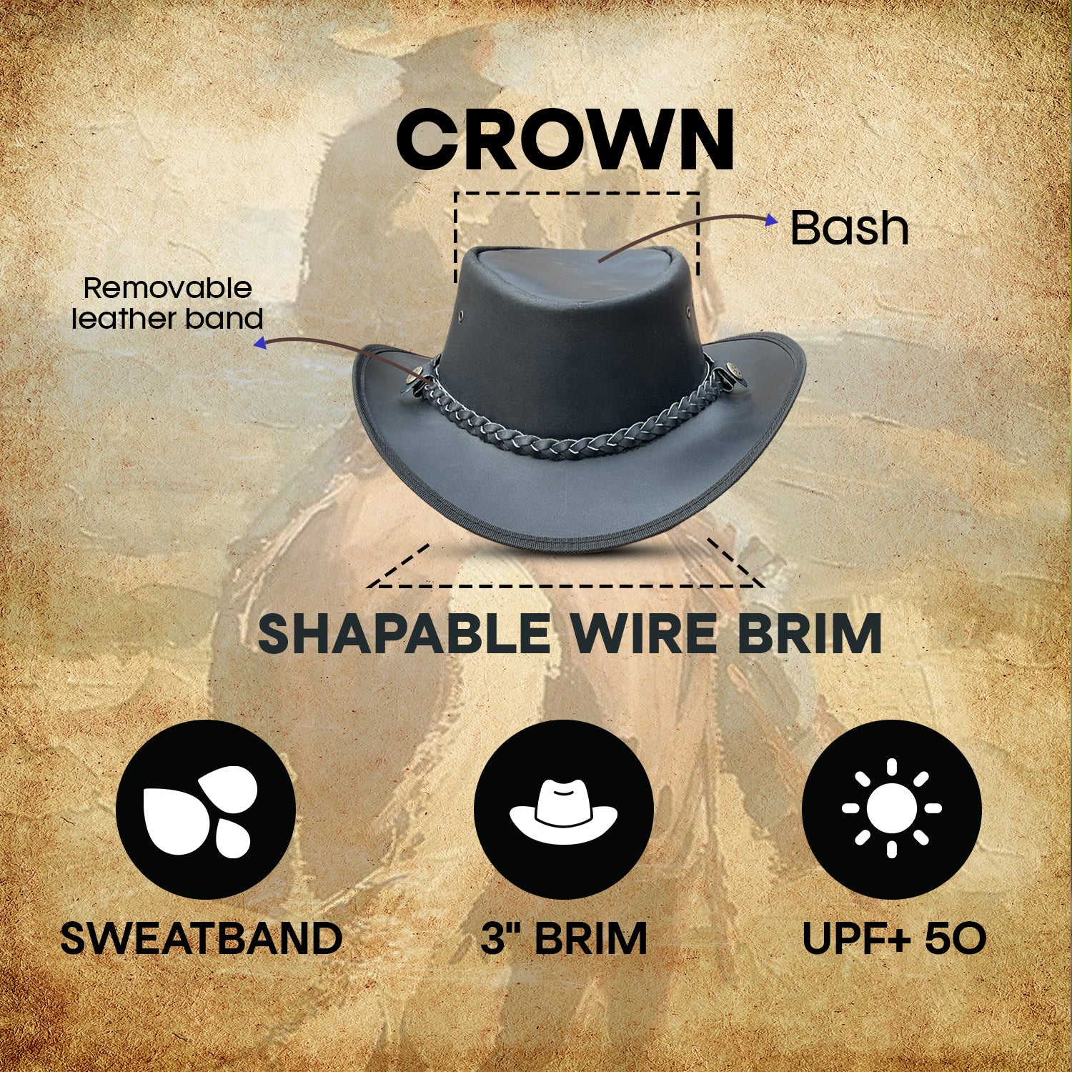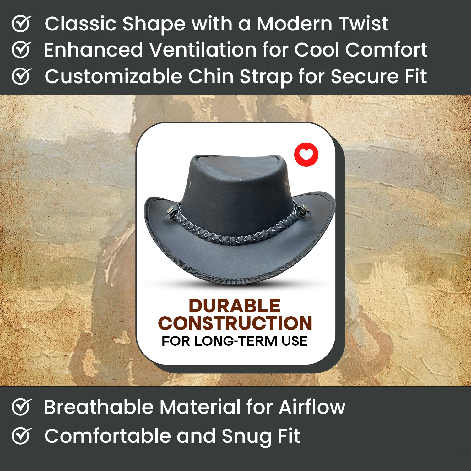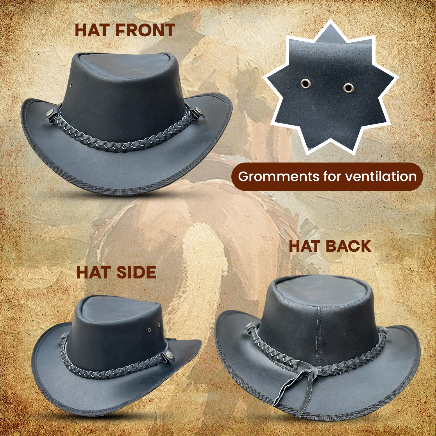 Designed for both fashion and function, this western hat features a removable braided leather band that adds a rustic touch. Ventilation eyelets on the sides help keep your head cool, while the adjustable chinstrap ensures a secure fit on windy days. Whether you're working outdoors or simply embracing Western style, this hat is built for versatility.