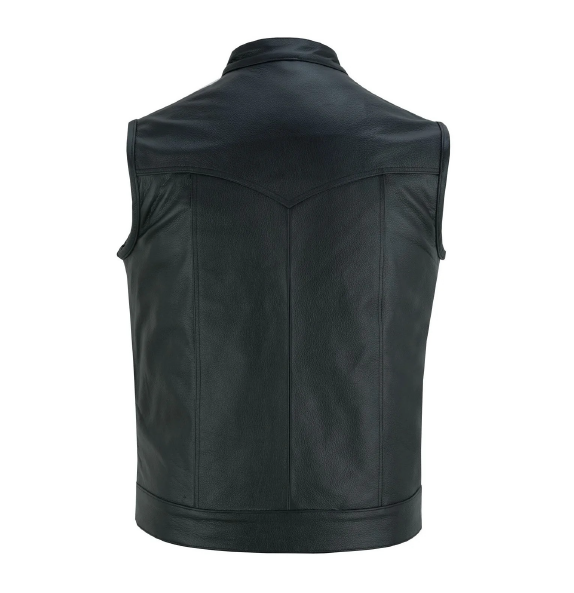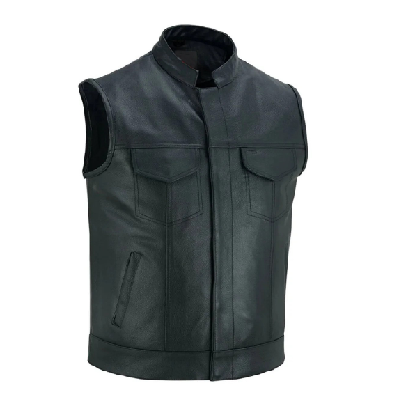 Make a bold statement on the road with this Men’s Black Leather Motorcycle Biker Vest, designed for riders who embrace the rebellious spirit of the open highway. Crafted from premium black leather, this vest offers a sleek and durable construction, perfect for long rides or casual wear. Inspired by classic Anarchy Club biker aesthetics, it features a snap-button front closure and a V-neck design, giving it an edgy, timeless look that complements any rider's gear.