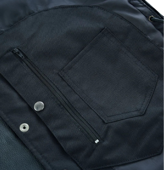 Built for maximum utility, this motorcycle vest features 10 strategically placed pockets, offering ample storage for essentials like wallets, keys, phones, and tools. Two concealed carry pockets provide safe and discreet gun storage, making this vest a perfect choice for riders who prioritize both security and style. The snap button front closure ensures easy wearability while maintaining a sleek and timeless look.