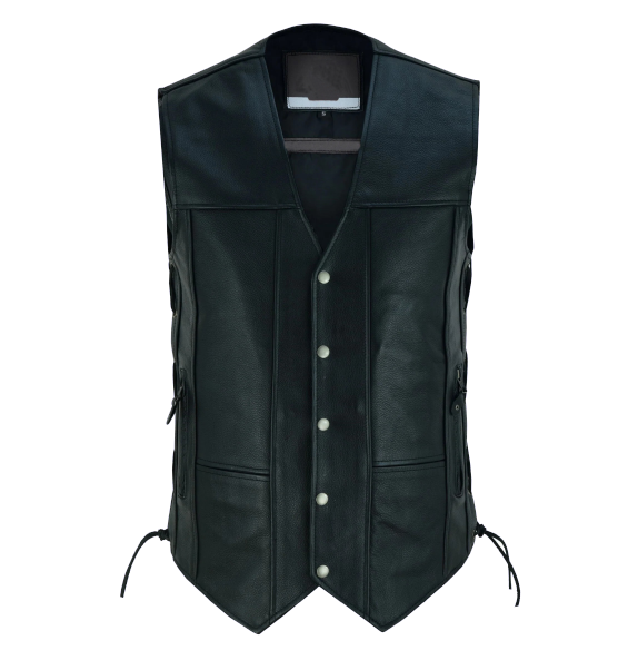 The Men’s Black Leather Motorcycle Vest with 10 Pockets and Side Laces is the ultimate blend of functionality, durability, and classic biker style. Made from premium genuine leather, this vest offers superior protection and a rugged aesthetic that never goes out of style. With side laces for an adjustable fit, you can customize it to your comfort, making it ideal for long rides or casual wear. Whether you’re cruising the open road or attending a motorcycle rally, this vest is designed to keep you looking sharp and feeling confident.