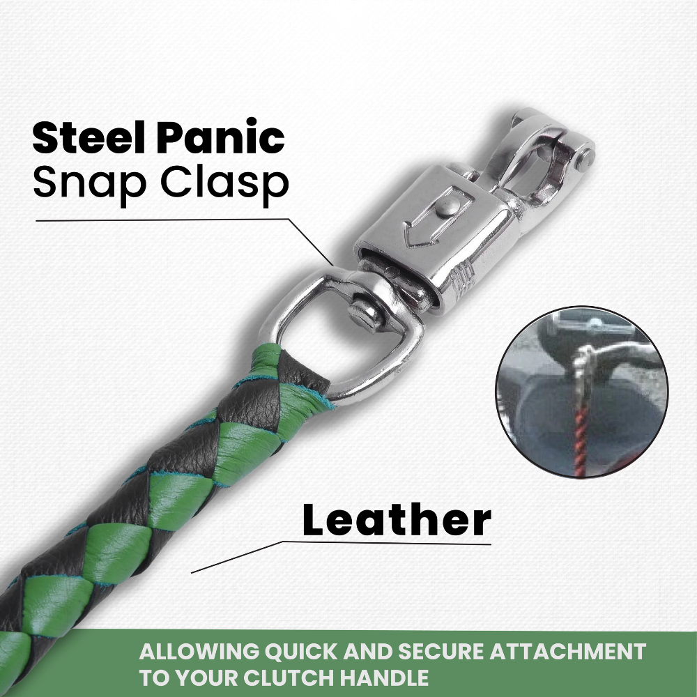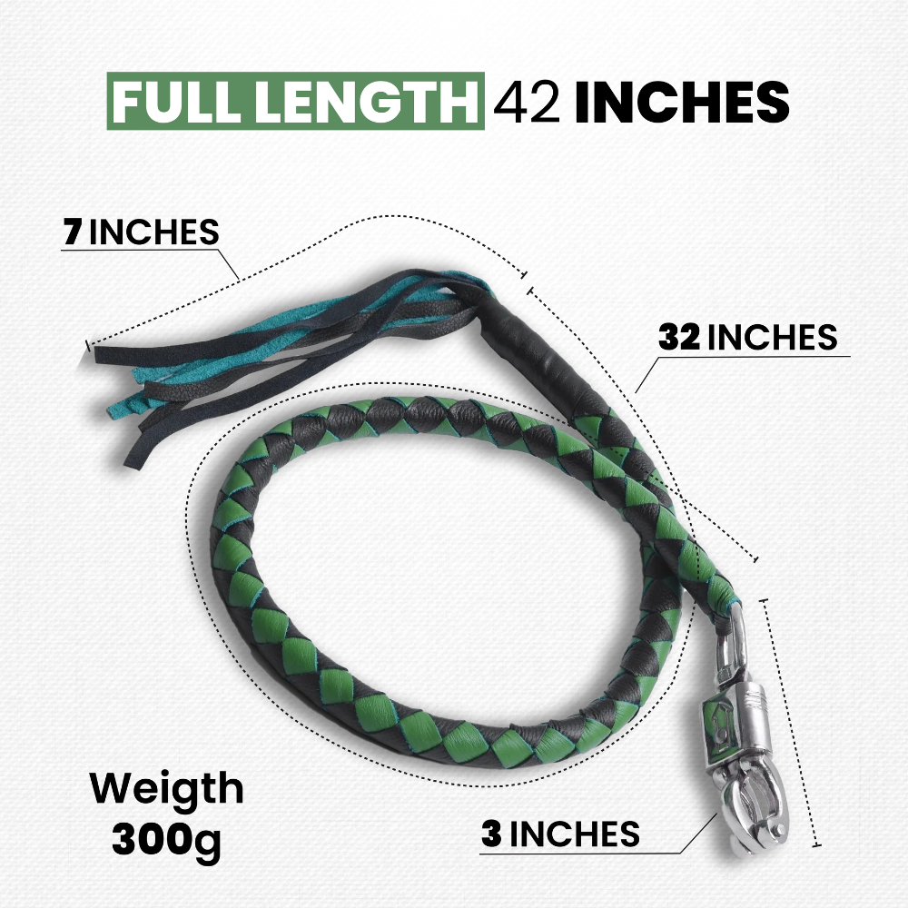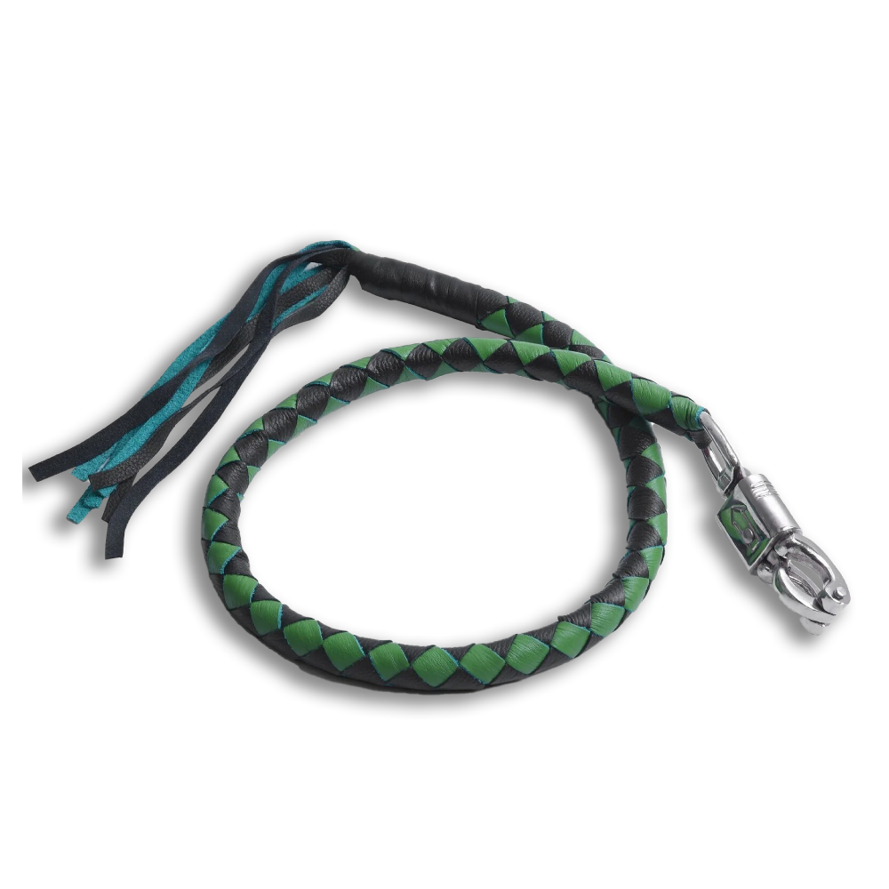 Unleash your inner road warrior with the 42" Black & Olive Get Back Whip, designed for bikers who live for the thrill of the ride. Handcrafted from genuine leather, this whip is as tough as it is stylish, ensuring long-lasting durability and a rugged finish. The braided black and olive design adds a unique and commanding presence to your motorcycle, letting you stand out with confidence. Whether you're riding solo or with your club, this whip is a true symbol of freedom, brotherhood, and rebellion.